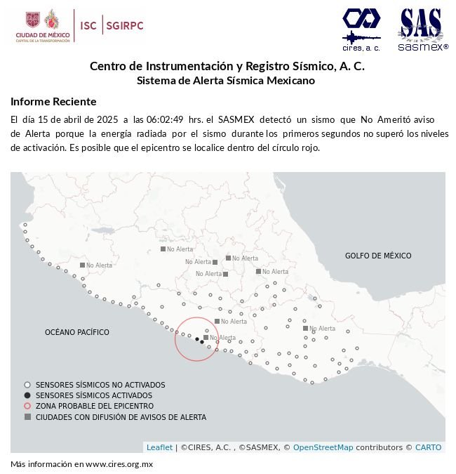 El sismo ocurrió a las 06:02 de la mañana, de acuerdo a datos proporcionados por el Servicio Sismológico Nacional (SSN), y fue lo suficientemente leve como para no causar alarma generalizada.