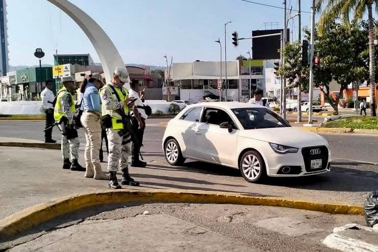 ACAPULCO. —Un automóvil de la marca Audi, color blanco, fue abandonado en plena Costera Miguel Alemán, a la altura de la emblemática glorieta de La Diana.
