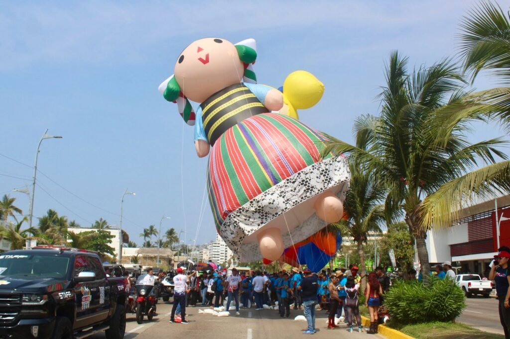 Con cerca de 40 globos gigantes, carros alegóricos, batucadas y personajes de distintas películas y caricaturas, miles de familias locales y turistas celebraron el Día del Niño en la avenida Costera Miguel Alemán de Acapulco.