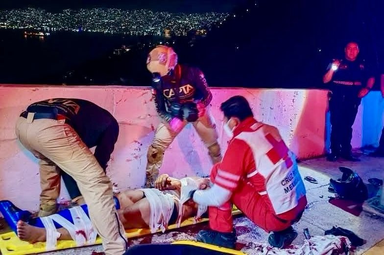 A pesar de portar casco, el hombre de aproximadamente 30 años de edad resultó con fracturas considerables en extremidades inferiores, incluyendo tibia, peroné y fémur, como consecuencia del fuerte golpe que recibió contra las estructuras del lugar.
