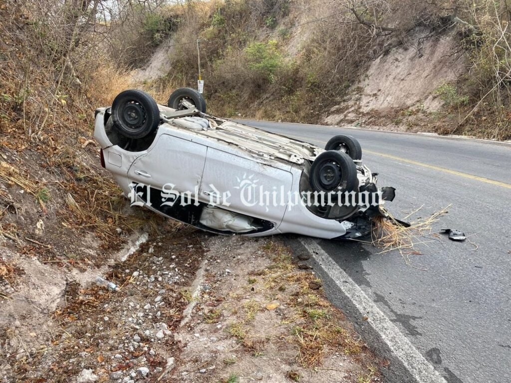 La mañana de este domingo, un automóvil volcó sobre la carretera federal Chilpancingo-Las Peñas Puebla, tramo Chilpancingo- Tixtla, a la altura del kilómetro 4, frente al punto conocido como “El Basurero”.