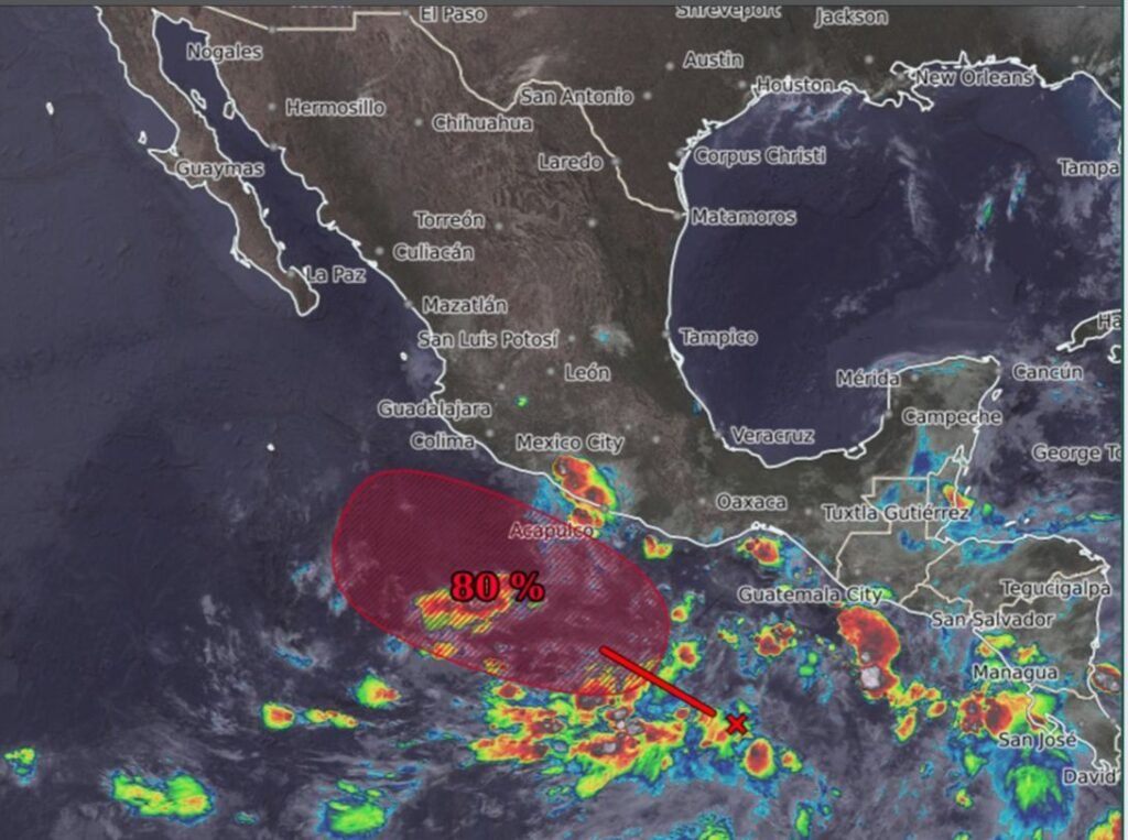 Se prevé que esta zona de inestabilidad evolucione a ciclón tropical durante el fin de semana, situándose frente a las costas de Guerrero y Michoacán, lo que podría generar lluvias intensas, rachas de viento y oleaje elevado.