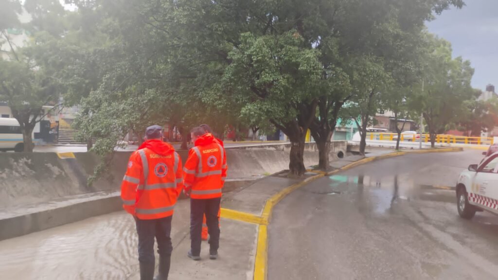 La dependencia estatal desplegó brigadas operativas para realizar recorridos preventivos y atender los incidentes derivados de la tormenta local. Las precipitaciones generaron acumulación de agua a nivel de banqueta en calles y avenidas, lo que causó tránsito lento y dificultades para automovilistas.