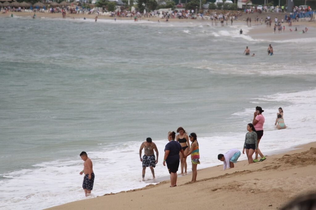 Pese a los alertamientos de las autoridades, turistas se mantienen disfrutando de la zona de playa aún y cuando persiste el mar de fondo en toda la zona costera.