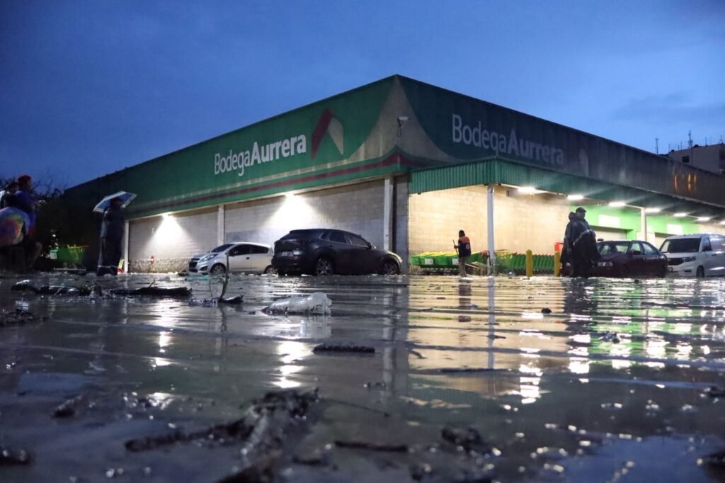 Así mismo, decenas de ciudadanos que se encontraban en el interior de la tienda quedaron atrapados e inundados en el lugar, quienes horas más tarde, tuvieron que salir por la parte trasera, apoyados por elementos de la Policía Estatal.