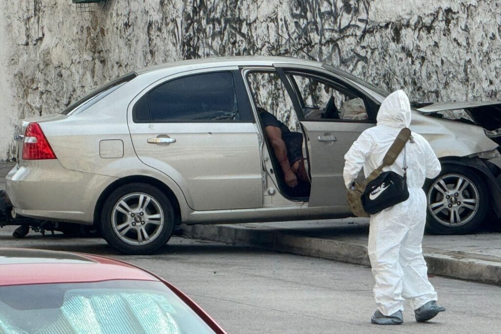 Tras el ataque, el automóvil, un Chevrolet tipo Aveo color arena, terminó impactado contra el muro de una casa.