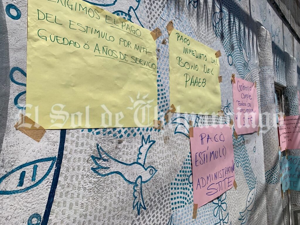 Trabajadores agremiados a la Sección 14 del Sindicato Nacional de Trabajadores de la Educación (SNTE) protestaron este miércoles afuera de las oficinas de Finanzas de la Secretaría de Educación Guerrero (SEG), para exigir el pago del bono por antigüedad correspondiente al Personal de Apoyo y Asistencia a la Educación (PAAE).
