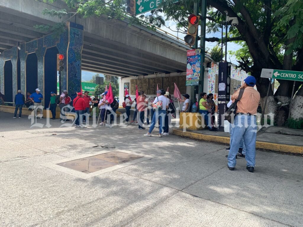 Integrantes de la Sección 18 del Sindicato Único de Servidores Públicos del Estado de Guerrero (SUSPEG) bloquearon el cruce de semáforos de la avenida Ruffo Figueroa, para exigir a las autoridades que los cambios de zona se respeten conforme a derecho.