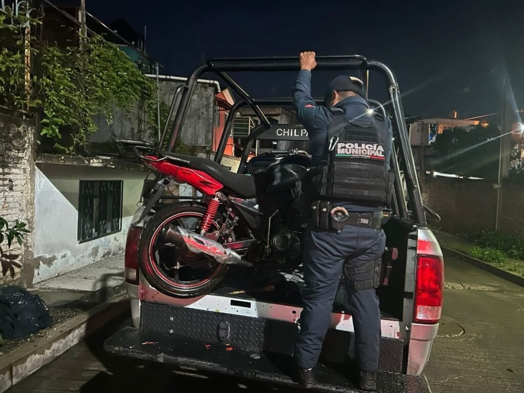Elementos de la Policía Municipal aseguraron una motocicleta reportada como abandonada, luego de atender una denuncia ciudadana en la calle Amates, entre las colonias Lombardo Toledano y Los Sauces.