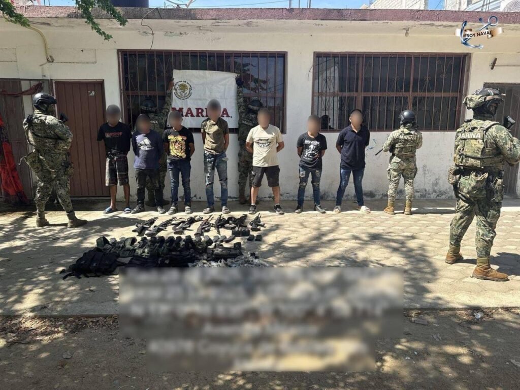 Señalaron que había un recorrido de disuasión y vigilancia efectuado por personal de Infantería de Marina, con apoyo de un helicóptero Black Hawk “para efectuar el reconocimiento y cobertura en el área de operaciones, lo que dio como resultado la detención de siete hombres”.