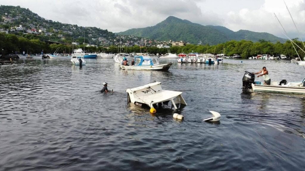 Personal de la Secretaría de Gestión Integral de Riesgos y Protección Civil del Estado de Guerrero (SGIRPCGRO) llevó a cabo maniobras de rescate de cuatro embarcaciones que se hundieron en la Laguna de Las Salinas, en Zihuatanejo, a consecuencia de un evento de mar de fondo y la activación de una alerta de tsunami en la franja costera.