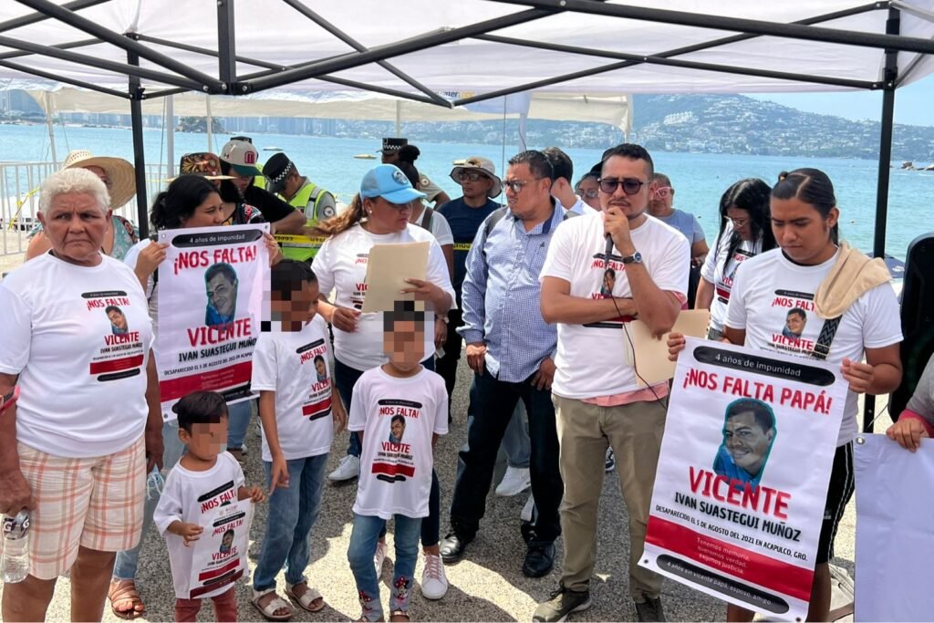 Con fichas de búsqueda y un mensaje de exigencia a las autoridades, familiares y amigos de Vicente Suástegui Muñoz conmemoraron en el Asta Bandera de Acapulco cuatro años de su desaparición forzada.
