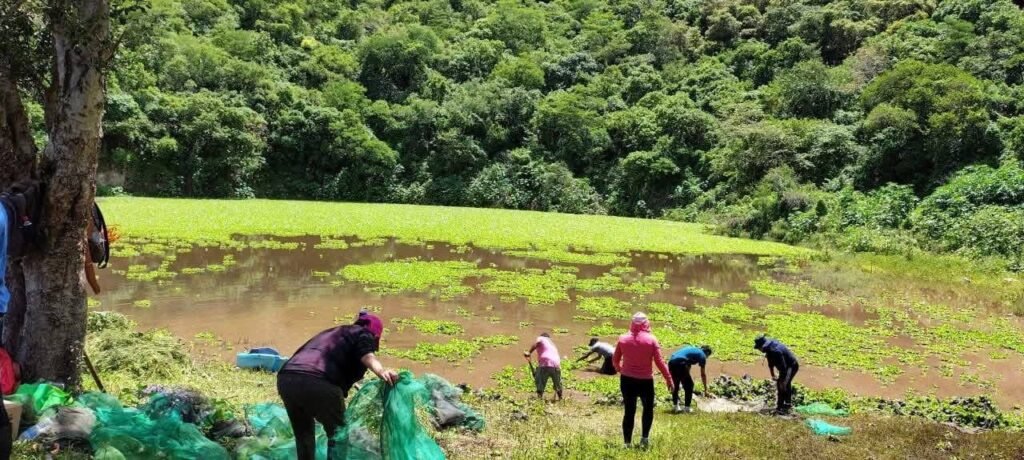 La faena comunitaria fue organizada por autoridades y ciudadanos de Tixtla, quienes junto a los normalistas retiraron basura, algas, lirios y vegetación que bloqueaban el flujo del agua hacia los resumideros.