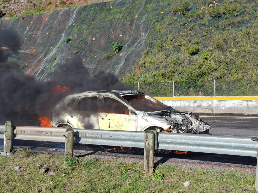 Personal del H. Cuerpo de Bomberos de Chilpancingo atendió el incendio de un vehículo registrado a la altura de la caseta de cobro de Palo Blanco, sobre la autopista del Sol.