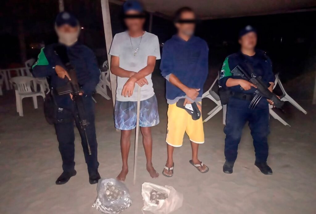 La madrugada de este jueves, personal de la corporación realizaba recorridos de vigilancia para la protección de quelonios marinos, cuando detectaron a dos sujetos de rodillas sobre la arena, frente a la palapa conocida como “El Gallo de Oro”.