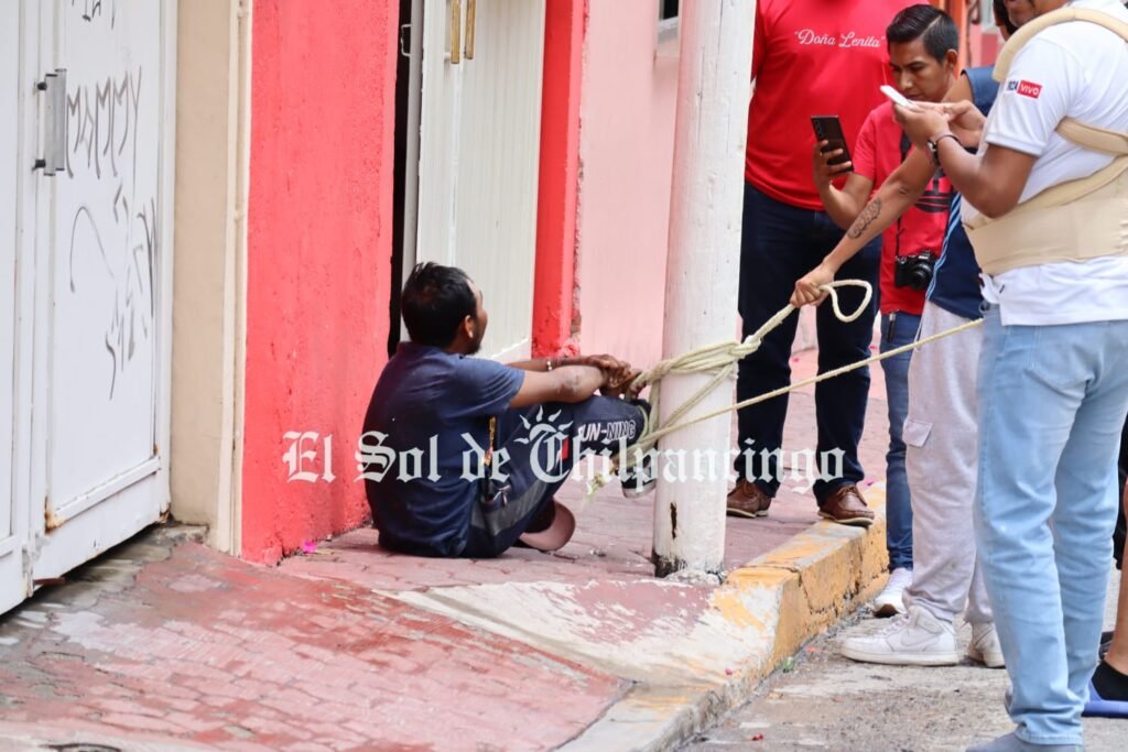Fue a eso de las 13:00 horas cuando vecinos de la calle Lerdo de Tejada reportaron al número de emergencias 911 que un sujeto que ya se llevaba una motoneta de color azul marca Italika 175 ya había sido sometido por los vecinos quienes le dieron de golpes y lo ataron al poste.