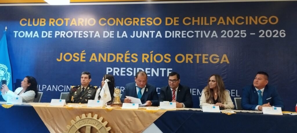 Este jueves por la mañana se realizó una ceremonia de la toma de protesta de la junta directiva del Club Rotario Congreso de Chilpancingo para el período 2025-2026 y que encabeza, Ríos Ortega.