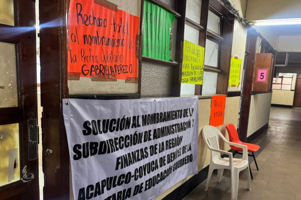 ACAPULCO. —Personal de la subdirección de Administración y Finanzas de la delegación de los Servicios Regionales de Acapulco–Coyuca de Benítez tomaron esas instalaciones para rechazar el nombramiento de la maestra jubilada, Gabriela Pérez Organista como subdirectora de dicha área, cargo que le fue asignado hace cinco meses.