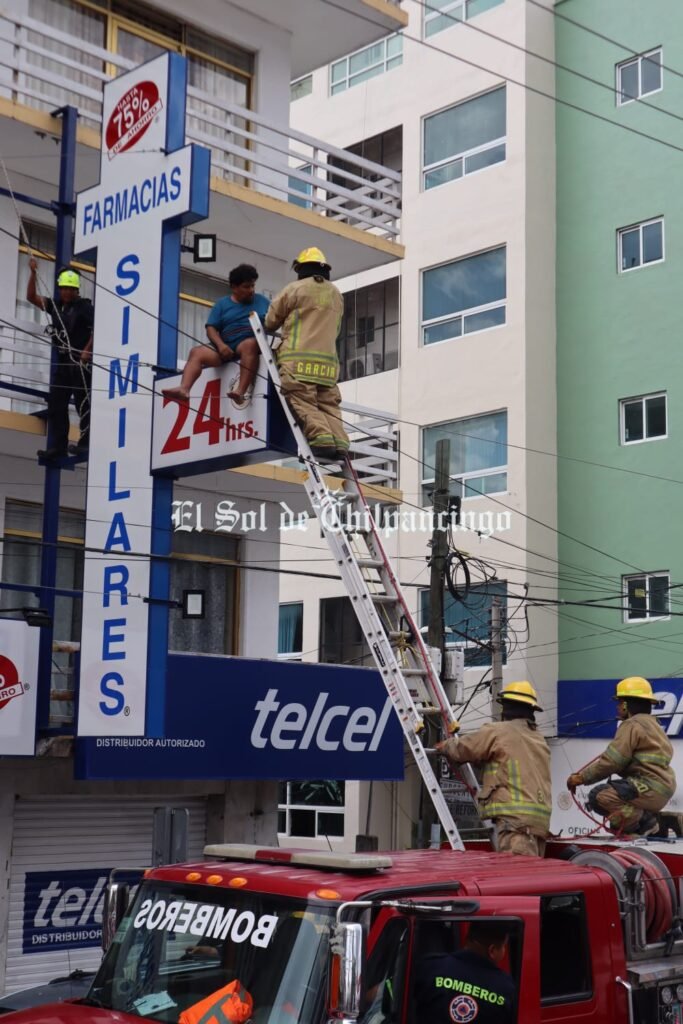 Todo ese tiempo fue aprovechado por personal de Protección Civil del estado quienes estacionaron el camión justo abajo de donde se encontraba el hombre donde colocaron una escalera para llegar hasta donde estaba el masculino, mientras que otros entraron al hotel para amarrar unas cuerdas para poder rescatarlo.