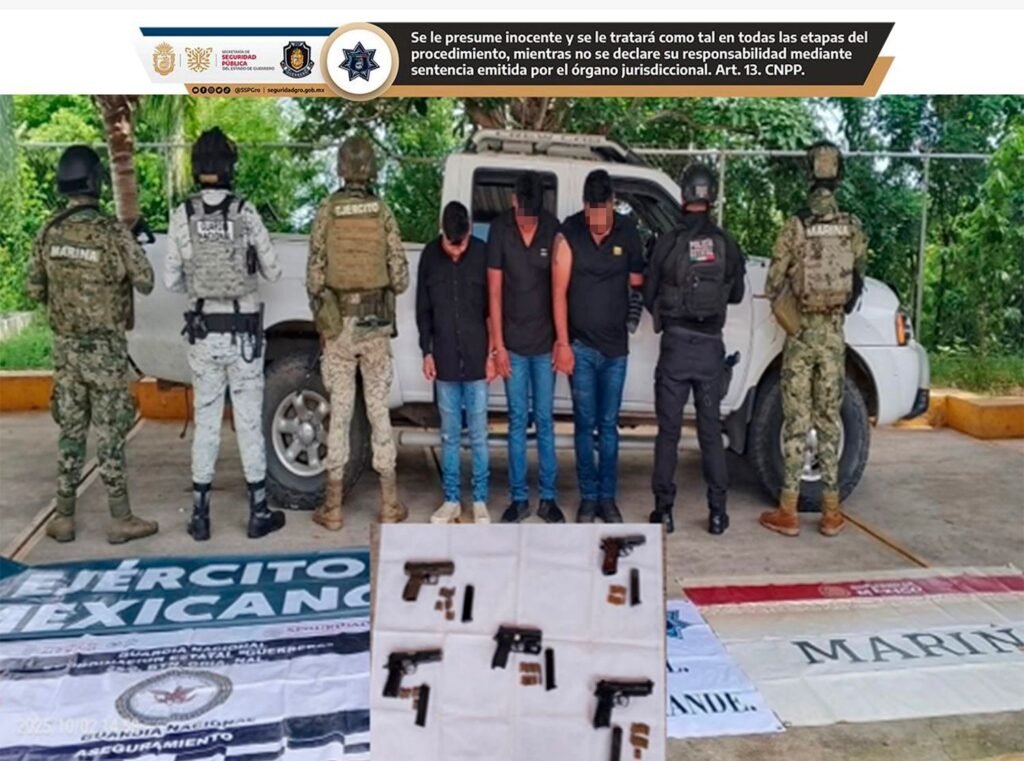En su reporte diario del gabinete de Seguridad se informó que este jueves en un patrullaje sobre la carretera Zihuatanejo-Lázaro Cárdenas se detuvieron a esas tres personas.