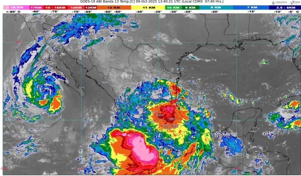 La dependencia federal detalló que se mantiene una zona de vigilancia por efectos de tormenta tropical desde Zihuatanejo, Guerrero, hasta Cabo Corrientes, Jalisco, ante la posibilidad de que el sistema evolucione en las próximas horas.