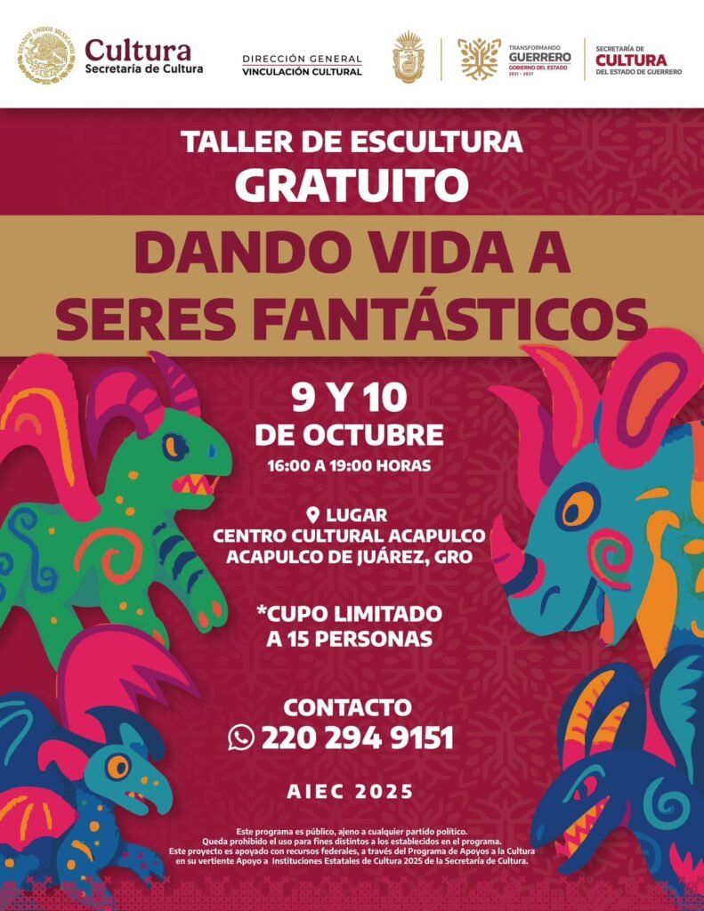 ACAPULCO. —En un esfuerzo por acercar las artes a la niñez y juventud guerrerense, la Secretaría de Cultura lleva a cabo el taller “Dando vida a seres fantásticos” en el Centro Cultural Acapulco, un espacio donde las y los participantes desarrollan su creatividad mediante dibujo, modelado y pintura.
