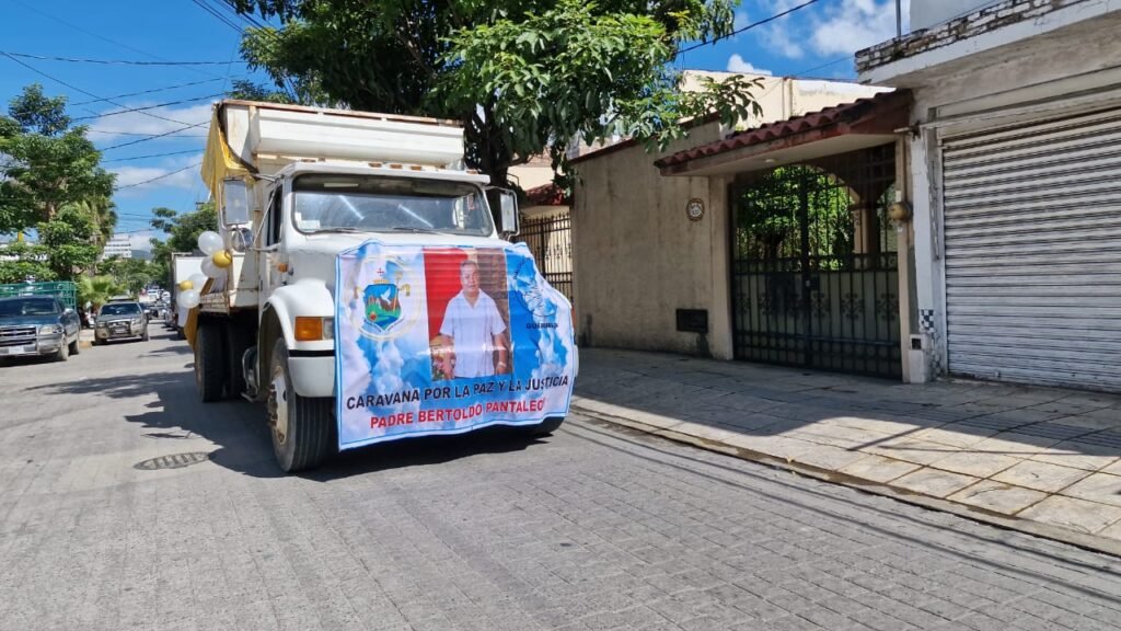 Con globos blancos, pancartas, rezos y cantos, cientos de fieles católicos participaron el sábado pasado en una caravana motorizada para exigir paz en la entidad y justicia por el asesinato del sacerdote Bertoldo Pantaleón Estrada, párroco de la Iglesia de San Cristóbal, en la comunidad de Mezcala.