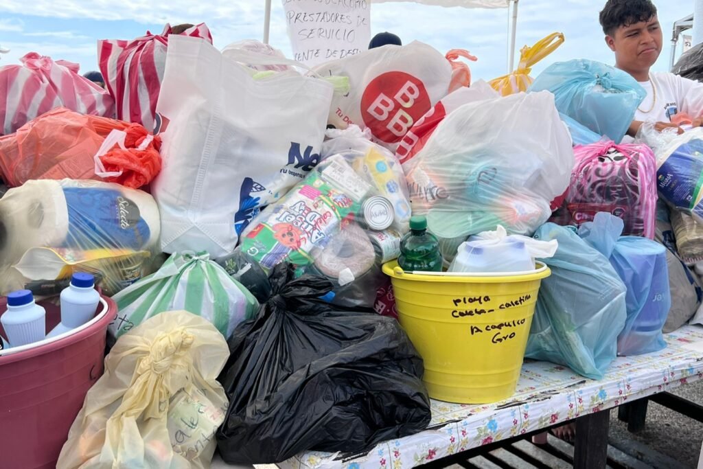 ACAPULCO. —Trabajadores de playa instalaron un centro de acopio en el Asta Bandera de la avenida Costera Miguel Alemán, para reunir víveres y artículos de primera necesidad para los damnificados por las recientes inundaciones en el estado de Veracruz.