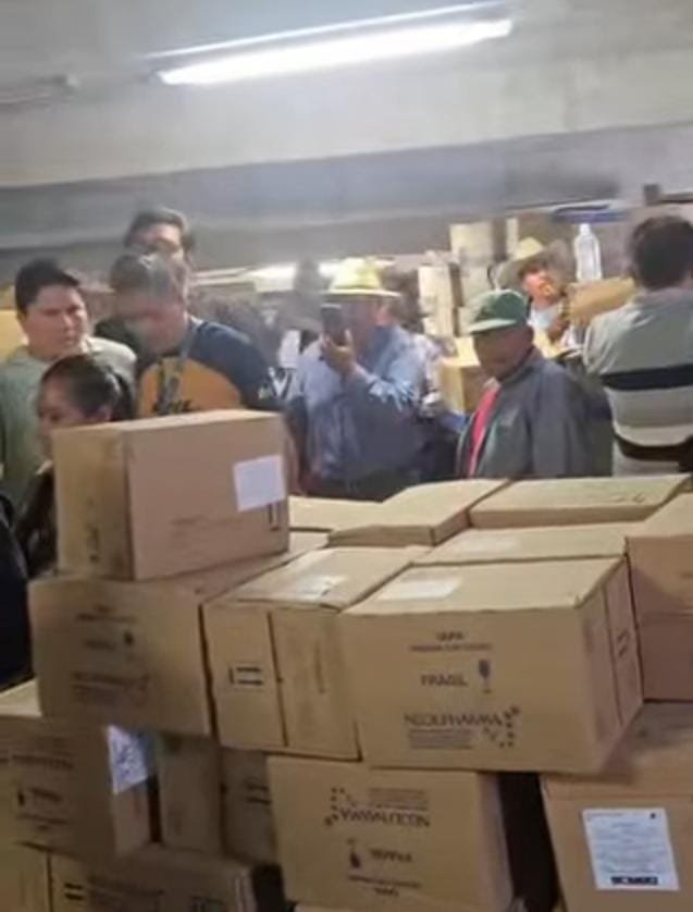 En el interior de la bodega, los inconformes encontraron una gran cantidad de cajas, las cuales estaban repletas de sueros y soluciones, así como también diferentes cajas con otros tipos de medicamentos.