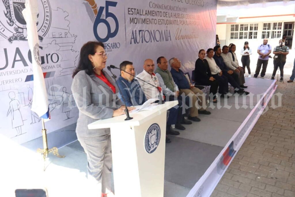 La Universidad Autónoma de Guerrero (UAGro), conmemoró este martes el 65 aniversario del estallamiento de la huelga general del movimiento estudiantil por la Autonomía Universitaria.