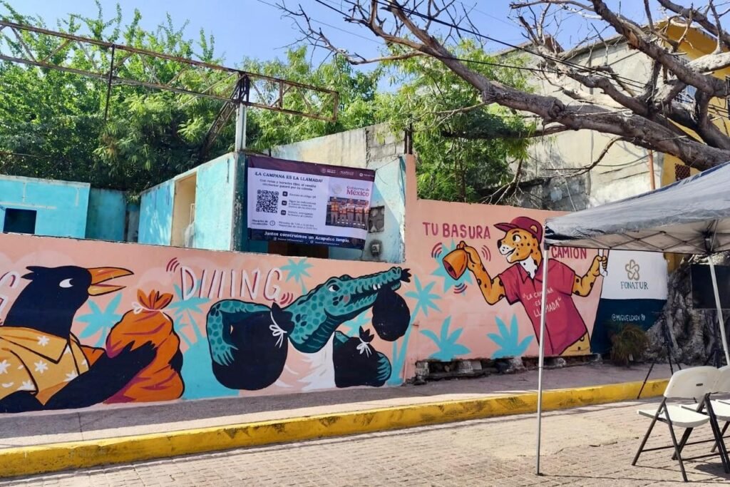 El mural inaugurado denominado “La basura va directo al camión” se ubica en la avenida Gran Vía Tropical, casi esquina con Costera Miguel Alemán, en un punto que por más de dos décadas fue uno de los puntos negros más conflictivos para el manejo de residuos.