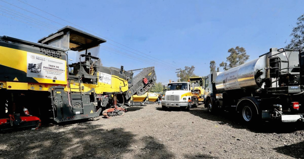 Este viernes en la conferencia en Palacio Nacional el titular de la SICT, Jesús Esteva Medina se enlazó desde el Estado de México en donde anunció que estaba entregando un segundo equipamiento de trenes de pavimentación en esa entidad, a donde se han desplegado 6 trenes para la pavimentación y conservación de la red carretera estatal.