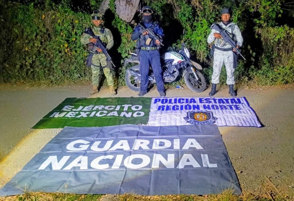 Elementos de la Policía Estatal, el Ejército y la Guardia Nacional, recuperaron una motocicleta con reporte de robo en la colonia Torres de San Andrés, municipio de Iguala de la Independencia.