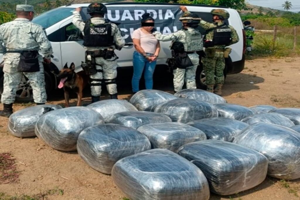 Según el informe, la detención ocurrió cuando la mujer circulaba a bordo de una camioneta blanca sobre la carretera federal Acapulco–Zihuatanejo, donde elementos de la Guardia Nacional y del Ejército Mexicano localizaron en el interior del vehículo 19 bultos con la droga, mismos que fueron asegurados y puestos a disposición de las autoridades competentes.