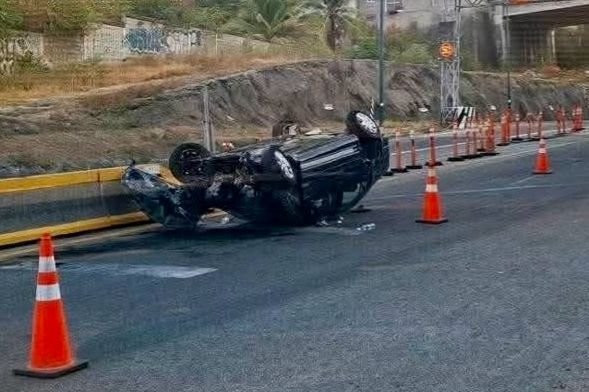De acuerdo a reportes, el conductor de un vehículo de la marca Volkswagen, tipo Jetta, color azul, circulaba a exceso de velocidad cuando perdió el control del volante, lo que provocó que la unidad se volcara sobre la vialidad.