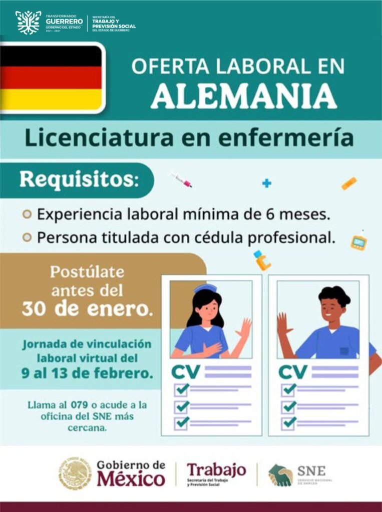 El gobierno del estado de Guerrero abrió un proceso de reclutamiento internacional dirigido a enfermeras y enfermeros titulados para laborar en un hospital de Alemania, como parte de las acciones para fortalecer la estabilidad social y económica de la entidad.