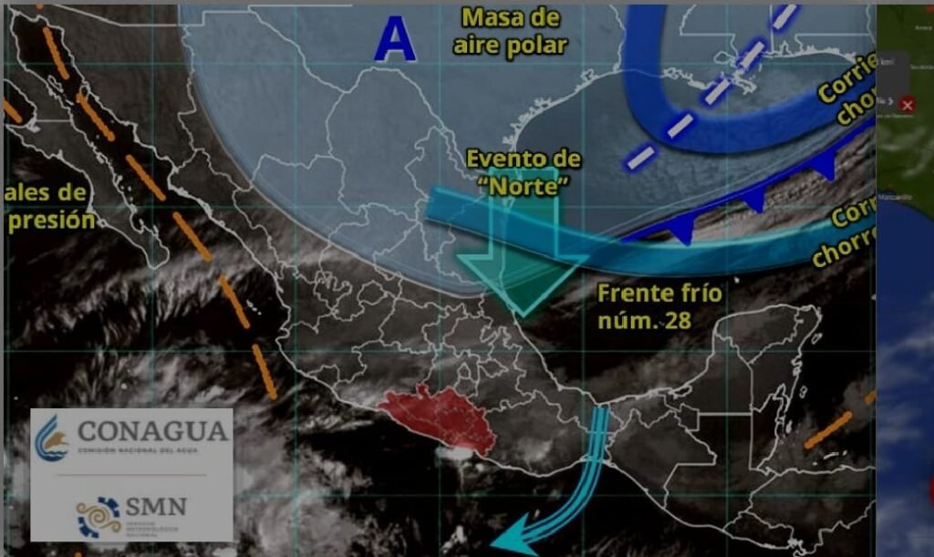 La dependencia explicó que, de manera simultánea, se extiende un canal de baja presión al oeste de la costa de Michoacán, lo que favorecerá la formación de nubosidad durante la tarde. Asimismo, el frente frío número 28, ubicado al norte de Veracruz, continuará su desplazamiento hacia el sur hasta posicionarse durante la noche sobre el Valle de México.