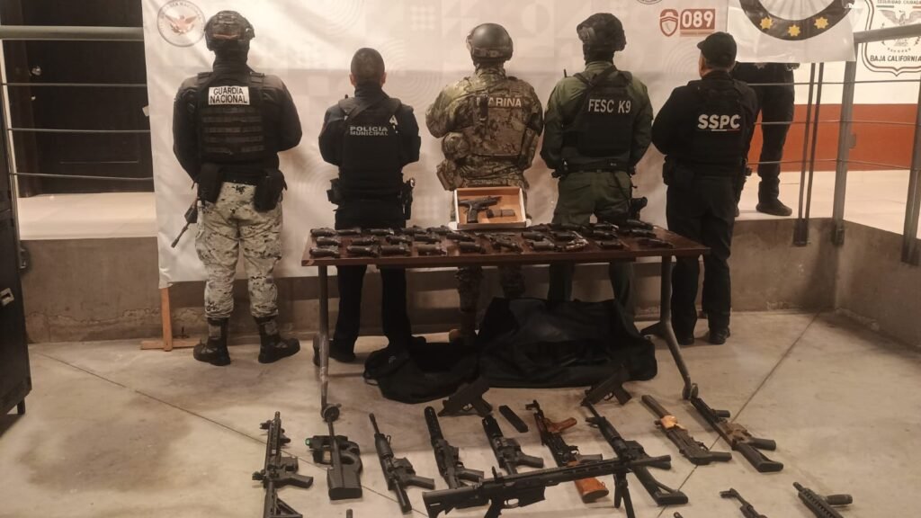 Elementos de la Guardia Nacional, en coordinación con el Ejército Mexicano y autoridades de los tres órdenes de gobierno, aseguraron un importante arsenal durante patrullajes de vigilancia realizados en el municipio de Tijuana, Baja California.