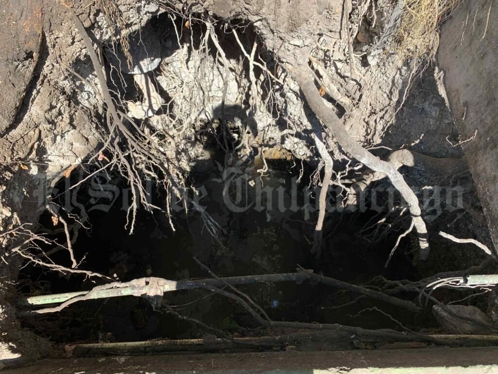 Si embargo, hasta el momento continúa sin ser atendido o reparado, únicamente en el lugar se observan unas cintas de “precaución”, las cuales ya cuelgan únicamente de los árboles, pero no impiden o señalan el peligro.