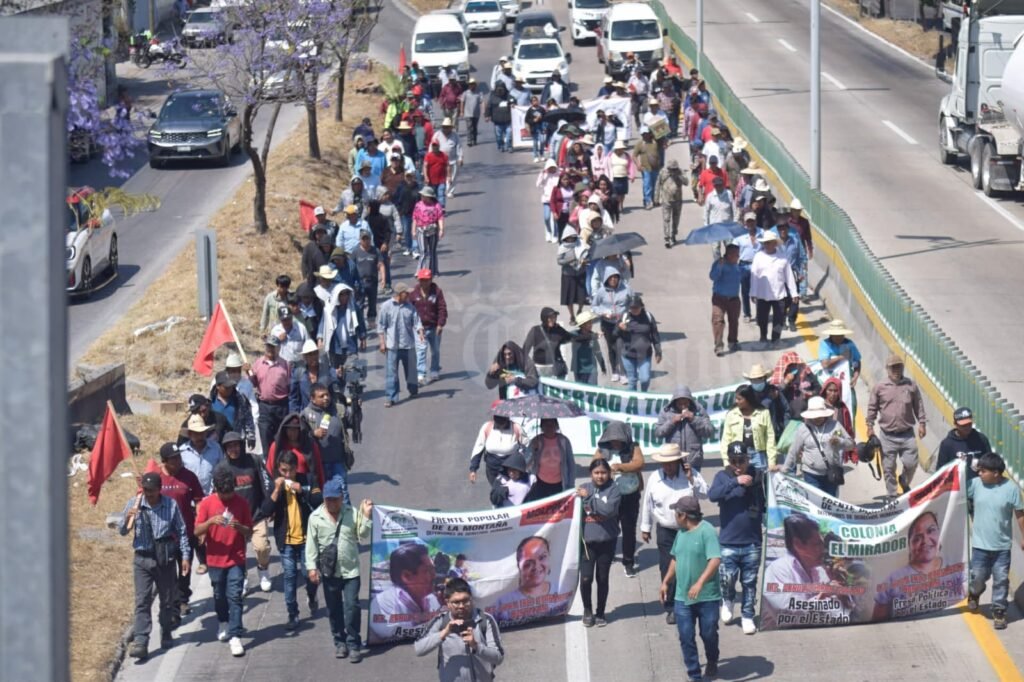 Integrantes del Frente Popular de la Montaña (FPM) marcharon este lunes sobre el carril norte-sur del boulevard Vicente Guerrero, para exigir justicia por el luchador social Arnulfo Cerón Soriano, desaparecido y posteriormente localizado sin vida en el año 2019 en Tlapa de Comonfort.