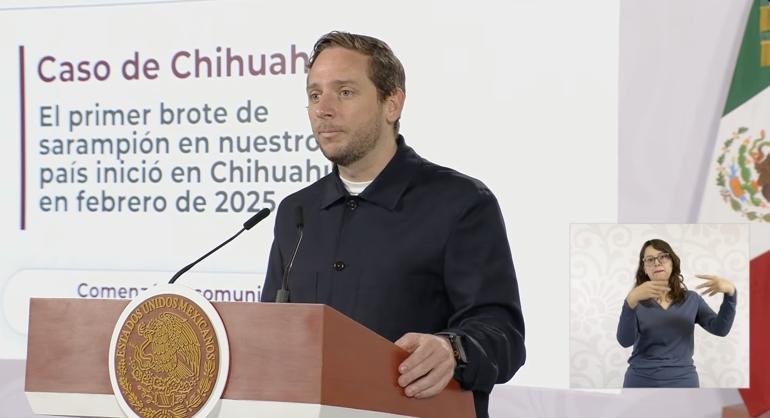 Este martes en la conferencia en Palacio Nacional el subsecretario de Salud, Eduardo Clark García Dobarganes dio un reporte del brote de sarampión en México y aseveró que nuestro papis “cuenta con altas tasas de vacunación, eso hace que un país de 133 millones de mexicanos se haya registrado el 1 caso en chihuahua, hoy tenemos a un año 9 mil 487 casos, 410 casos más que hace una semana, si no nos vacunamos y si no nos hubiéramos vacunado históricamente un virus como el sarampión podría generar cientos de miles, sino que millones de contagios, entonces hoy en México si bien tenemos casos nuevos estamos en una incidencia relativamente baja porque estamos protegidos la gran mayoría de los mexicanos”.