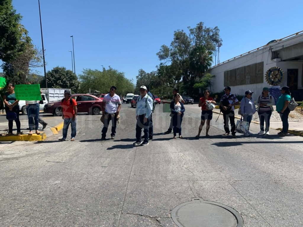 Minutos después de la 1:00 de la tarde, alrededor de 100 personas, entre padres de familia y docentes, se apostaron sobre el cruce de semáforos que conecta las avenidas Lázaro Cárdenas y Ruffo Figueroa, justo a un costado de Aurrerá Sur.
