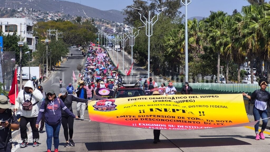 La movilización partió desde la avenida Ruffo Figueroa, al sur de la ciudad, y avanzó por la avenida Lázaro Cárdenas, donde los manifestantes expresaron su inconformidad por la toma de nota otorgada a la dirigencia del SUSPEG, que encabeza Javier Velázquez Pat, la cual aseguraron, fue impugnada por presuntas irregularidades en el proceso electoral interno.